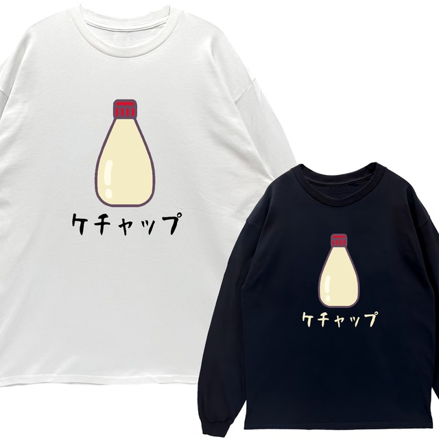 [リブあり]ケチャップ マヨネーズ ロンT 長袖 ロングスリーブ Tシャツ 白 黒 ギャグ ネタ ウケ狙い パロディ おもしろ 面白い プリント ストリート 厚め しっかり生地 ゆったり 1100054
