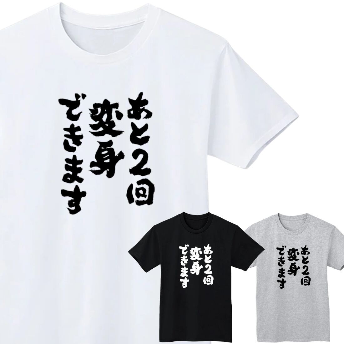 あと2回変身できます Tシャツ 半袖 白 黒 おもしろ 筆文字 なんでやねん ギャグ 名言 ウケ狙い パロディ 漢字 メッセージ お笑い プレゼント ギフト 1700019 | BLACK REBEL