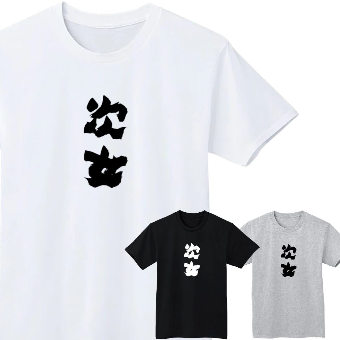 次女 Tシャツ 半袖 白 黒 おもしろ 筆文字 家族 なんでやねん ギャグ 名言 ウケ狙い パロディ 漢字 メッセージ お笑い プレゼント ギフト 1700025