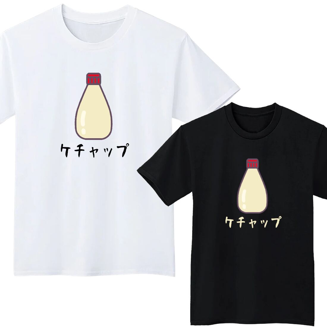ケチャップ マヨネーズ Tシャツ 半袖 白 黒 大阪名物 なんでやねん ギャグ ネタ ウケ狙い パロディ おもしろ 面白い プリント ストリート 1400112