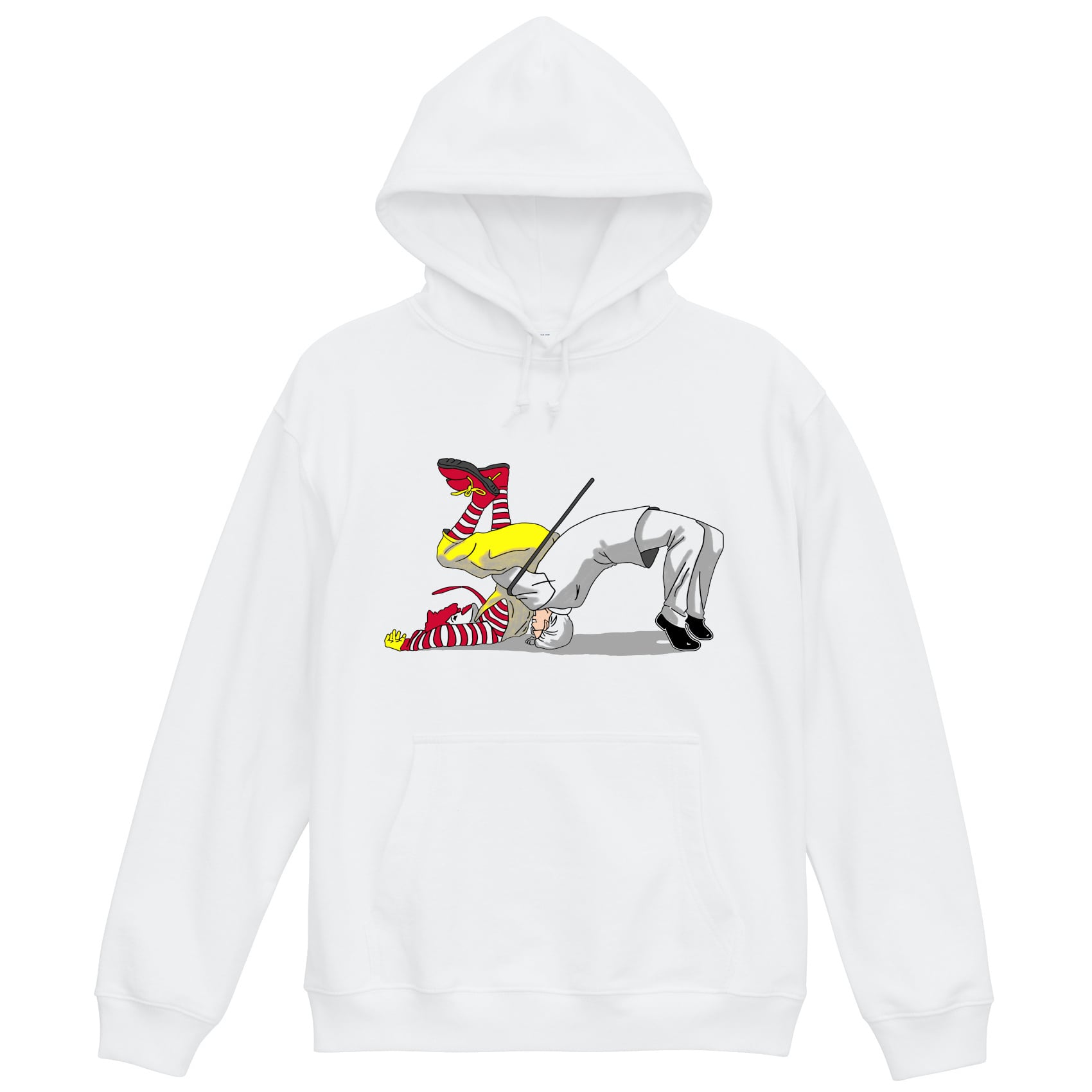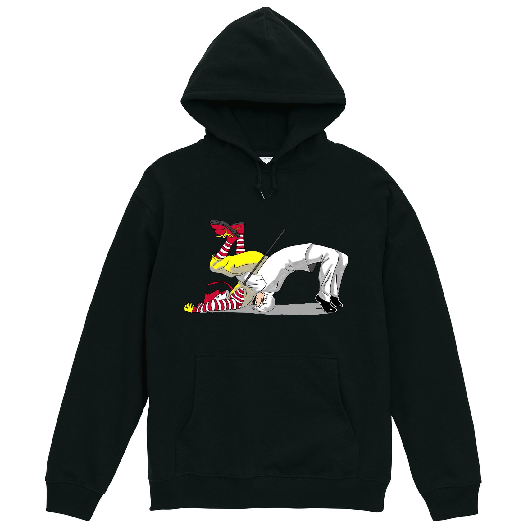 [裏毛] カーネルVSドナルド バックドロップ パーカー 裏パイル 長袖 白 黒 ギャグ ネタ ウケ狙い パロディ おもしろ 面白い プリント ストリート ゆったり 大きめサイズ フーディ 1300013 | BLACK REBEL
