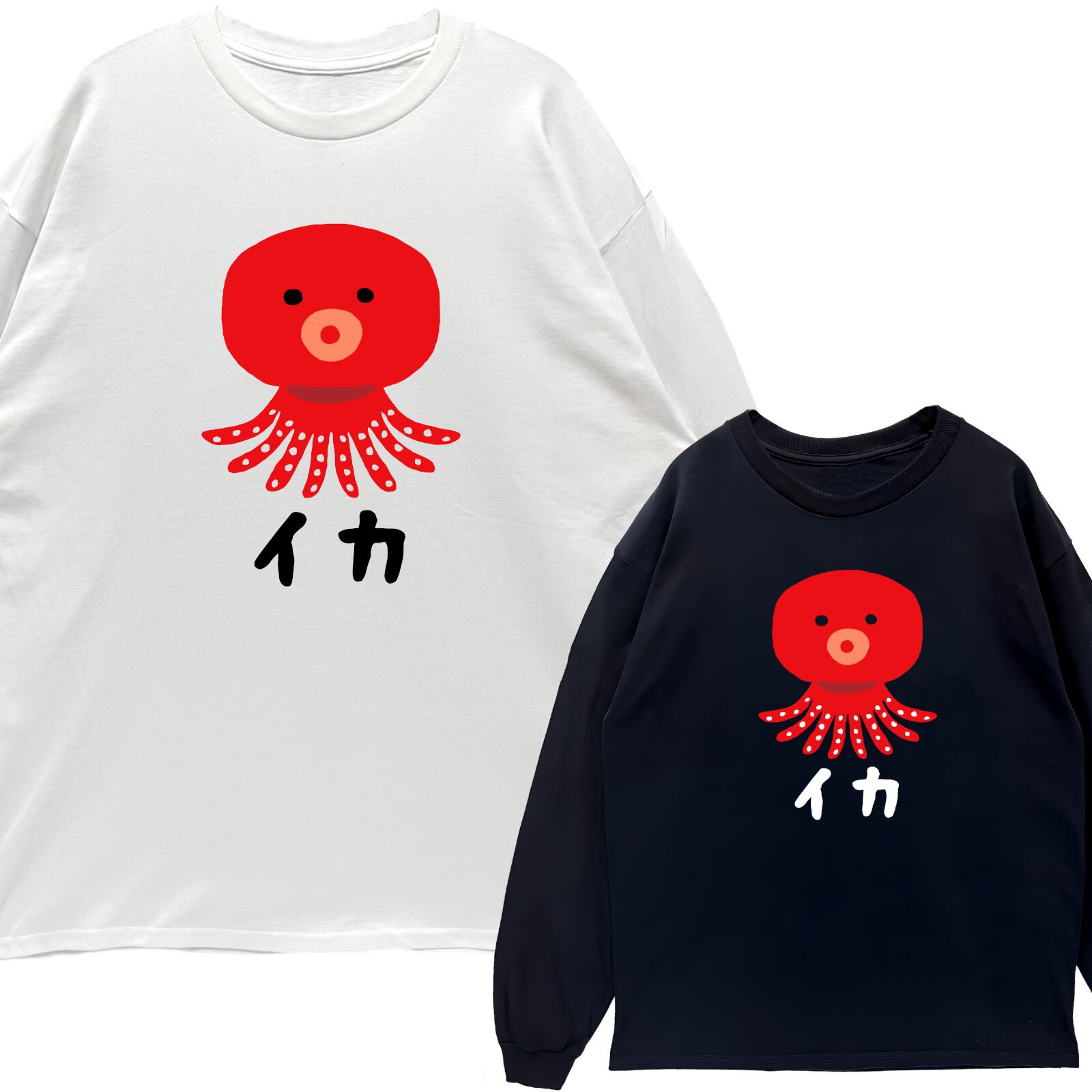 [リブあり]イカ タコ ロンT 長袖 ロングスリーブ Tシャツ 白 黒 ギャグ ネタ ウケ狙い パロディ おもしろ 面白い プリント ストリート しっかり生地 ゆったり 1100058 | BLACK REBEL