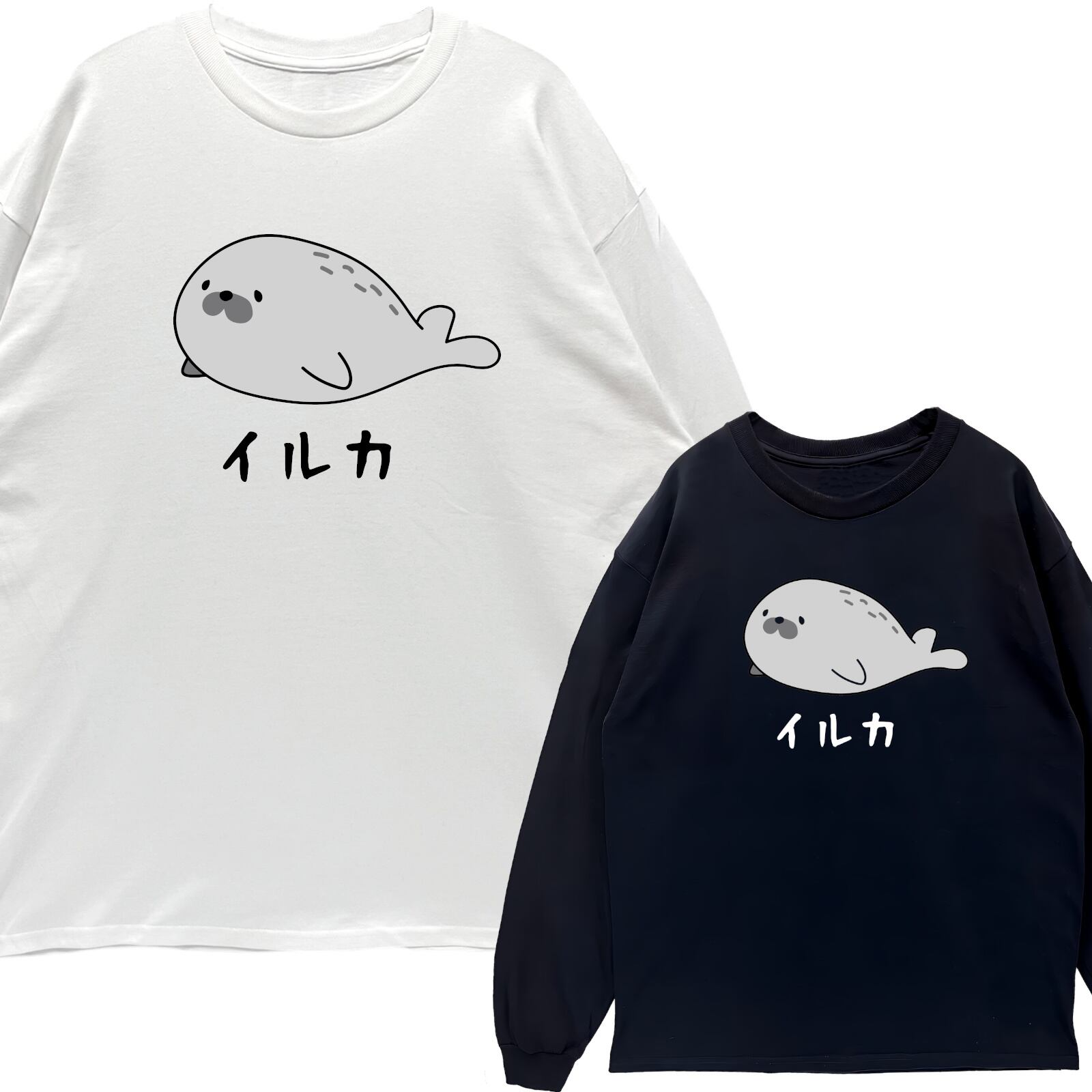[リブあり]イルカ アザラシ ロンT 長袖 ロングスリーブ Tシャツ 白 黒 ギャグ ネタ ウケ狙い パロディ おもしろ 面白い プリント ストリート しっかり生地 ゆったり 1100059 | BLACK REBEL