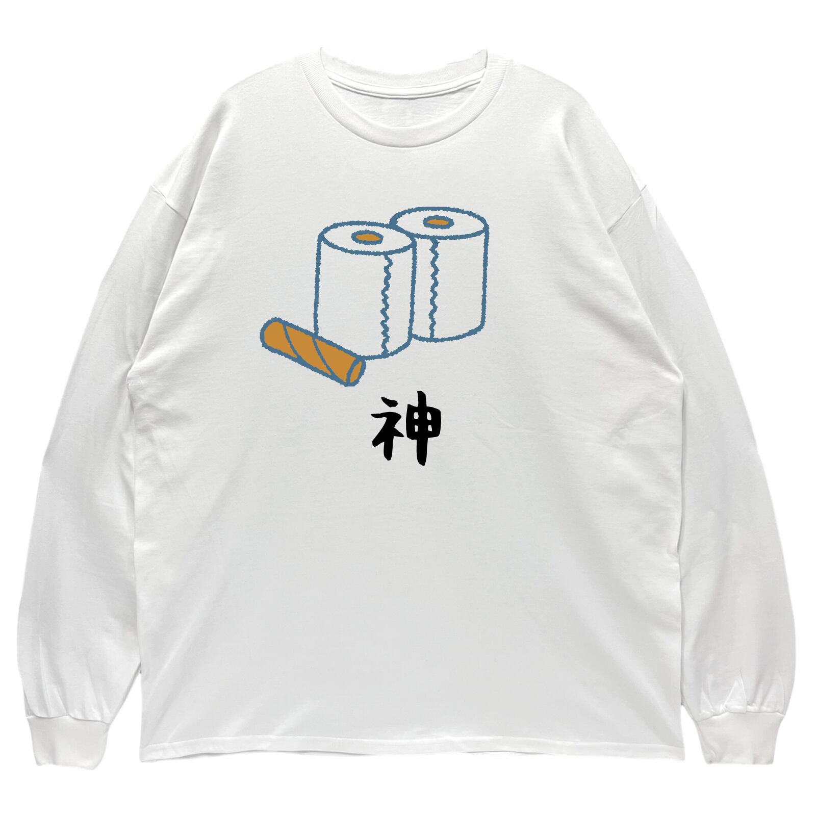 [リブあり]神 紙 トイレットペーパー ロンT 長袖 ロングスリーブ Tシャツ 白 黒 ギャグ ネタ ウケ狙い パロディ おもしろ プリント ストリート しっかり ゆったり 1100062 | BLACK REBEL