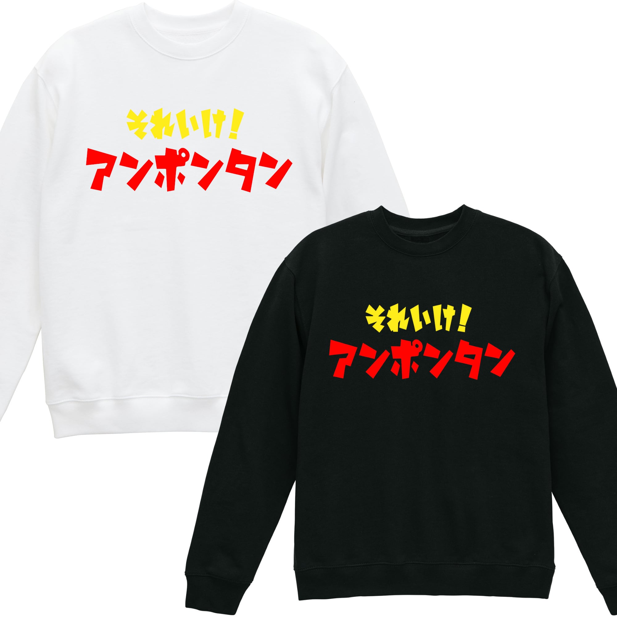 [裏毛]それいけ!アンポンタン 裏パイル トレーナー 長袖 白 黒 ギャグ ネタ ウケ狙い パロディ おもしろ プリント ストリート しっかり ゆったり スウェット 1200062 | BLACK REBEL