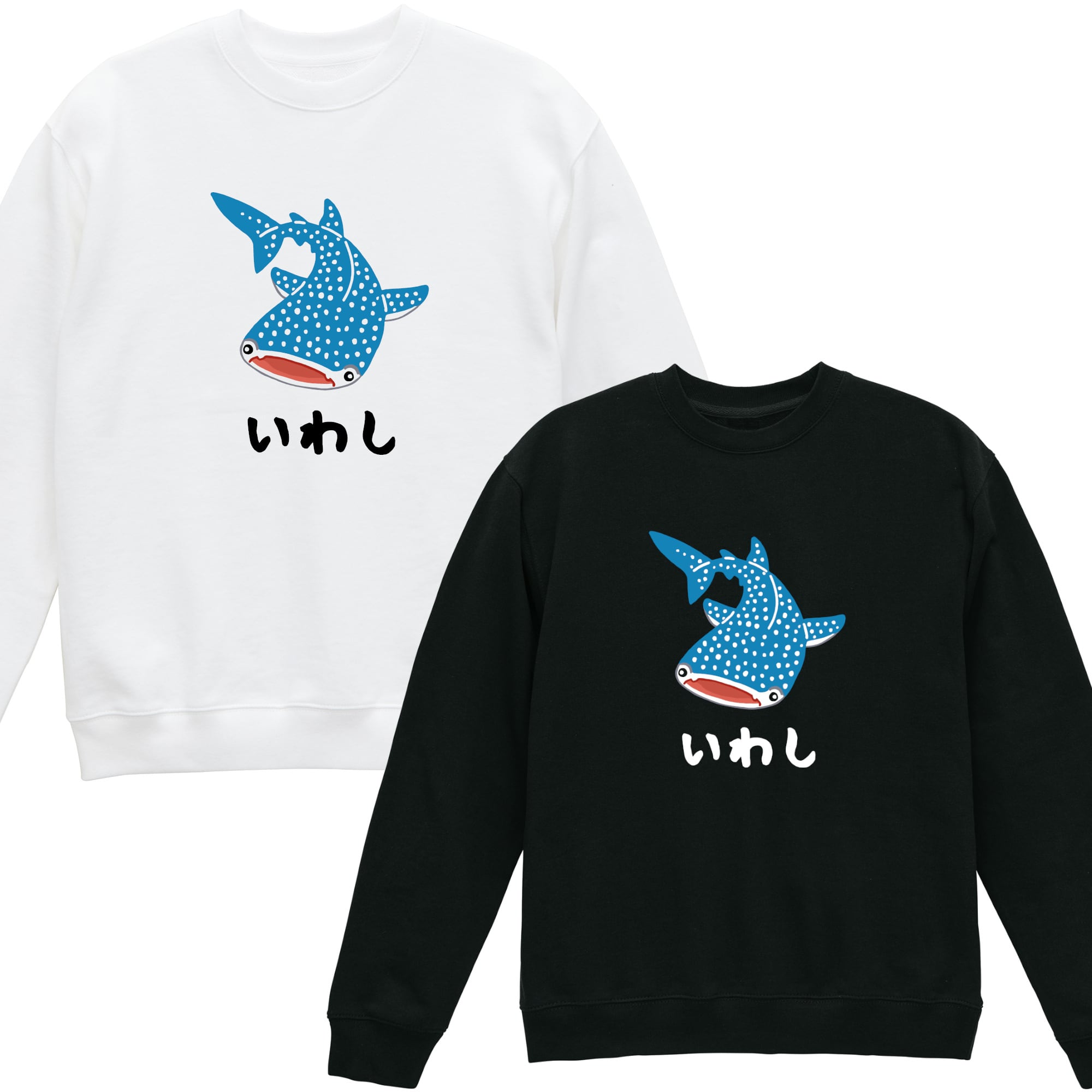 [裏毛]いわし ジンベエザメ 裏パイル トレーナー 長袖 白 黒 ギャグ ネタ ウケ狙い パロディ おもしろ プリント ストリート しっかり ゆったり スウェット ジンベイザメ 1200067 | BLACK REBEL