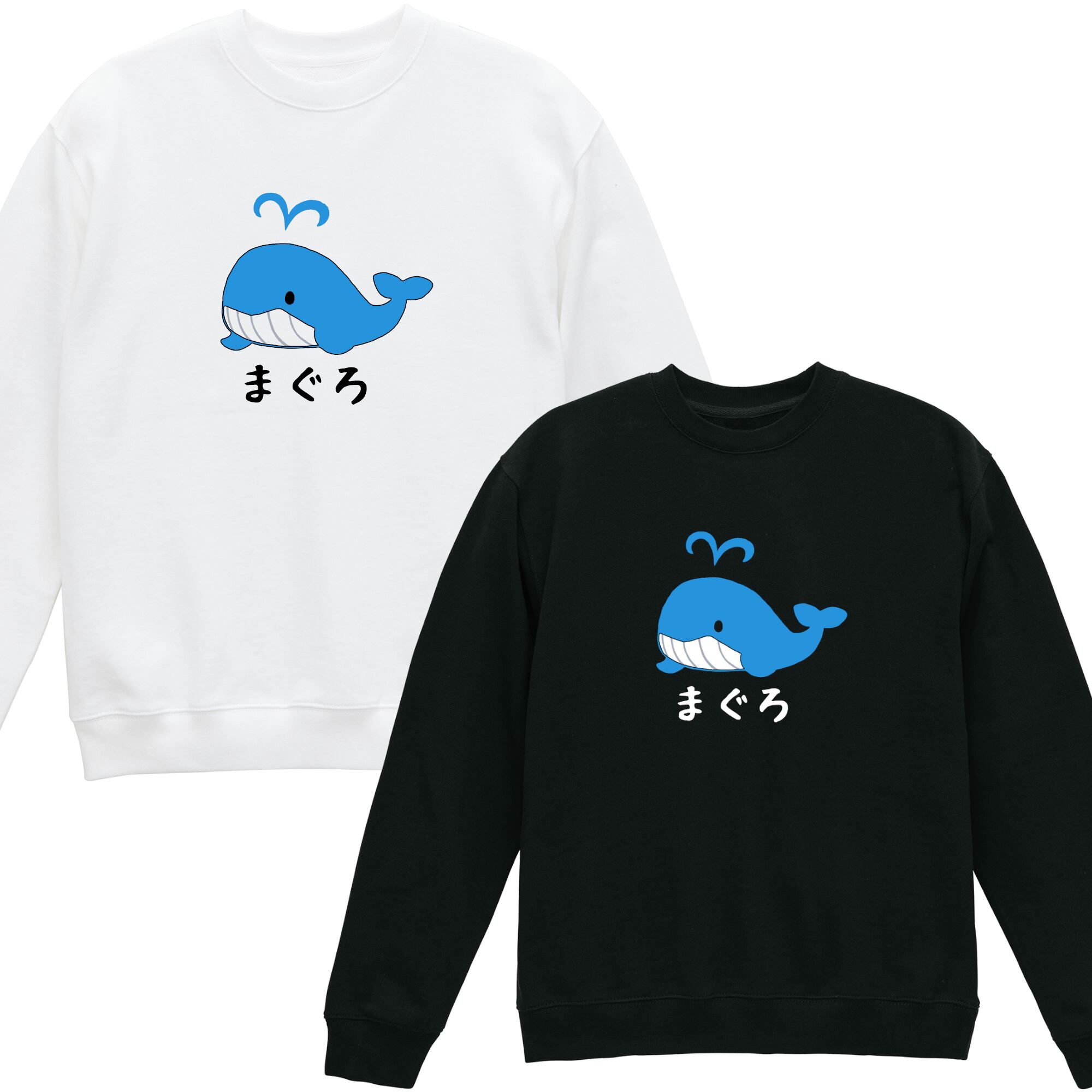 [裏毛]まぐろ くじら 裏パイル トレーナー 長袖 白 黒 ギャグ ネタ ウケ狙い パロディ おもしろ プリント ストリート しっかり ゆったり スウェット 1200068 | BLACK REBEL
