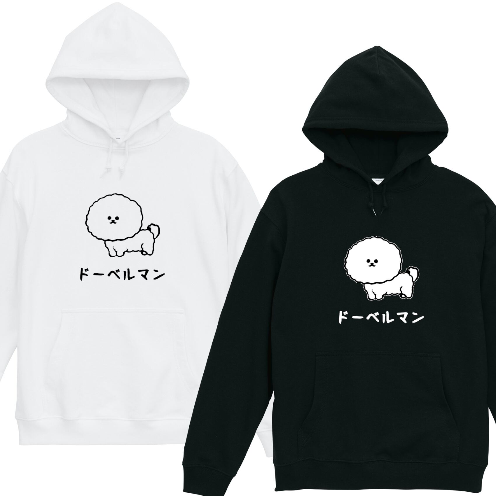 [裏毛]ドーベルマン ビションフリーゼ パーカー 裏パイル 長袖 白 黒 ギャグ ネタ ウケ狙い パロディ おもしろ プリント ストリート ゆったり 大きめ フーディ 1300015 | BLACK REBEL