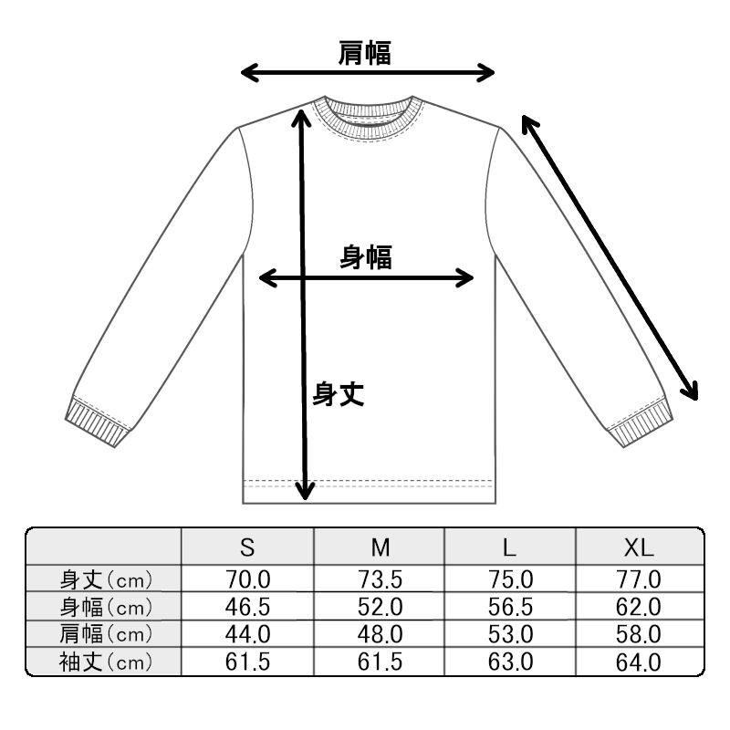 XLサイズ : 着丈約77.0cm / 身幅約62.0cm / 肩幅約58.0cm / 袖丈約64.0cm