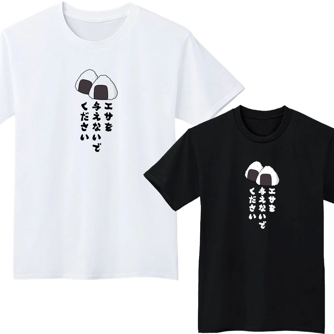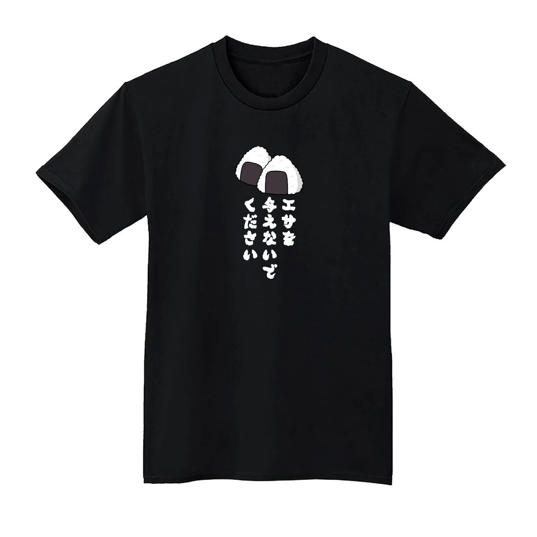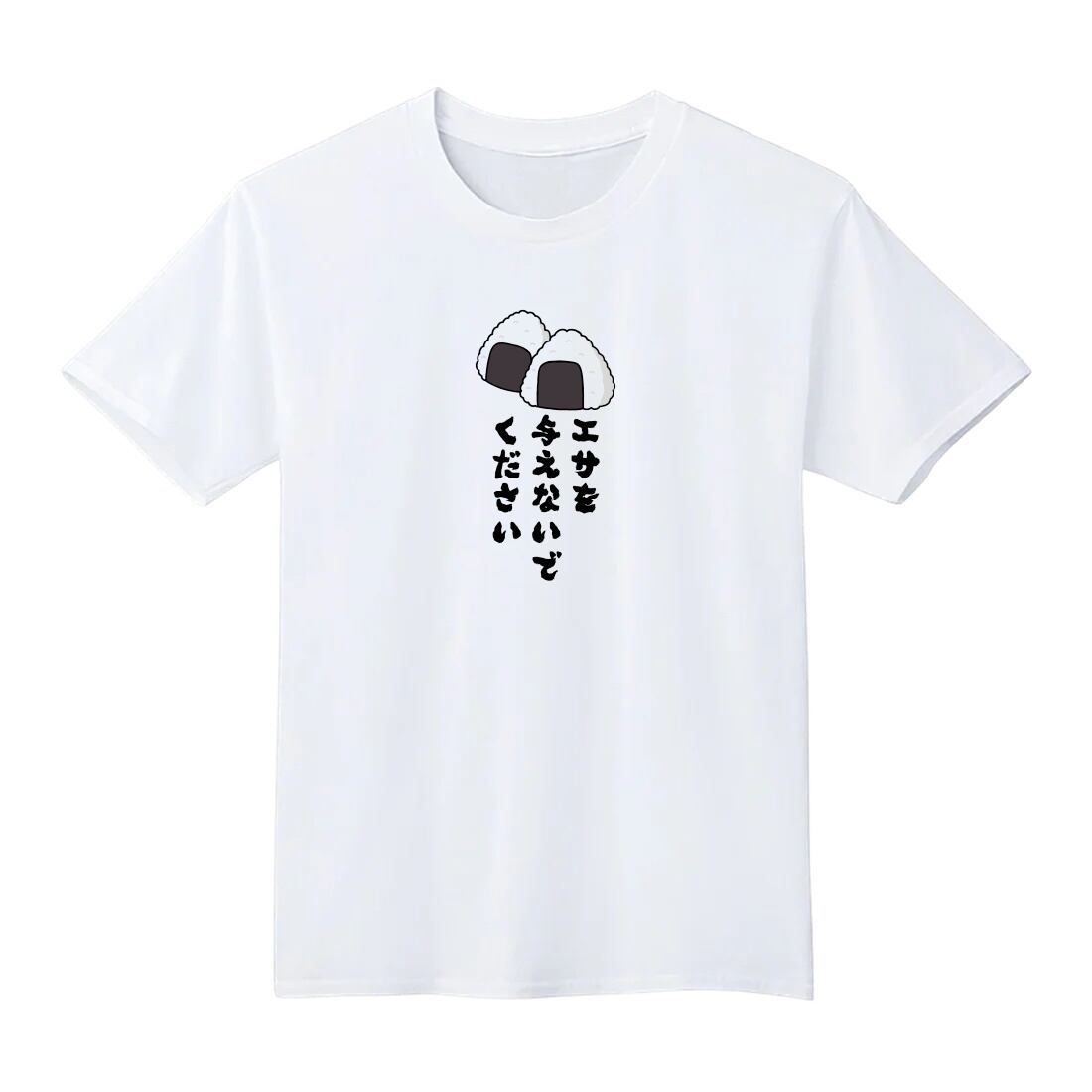 エサを与えないでください おにぎり Tシャツ 半袖 白 黒 大阪名物 なんでやねん ギャグ ネタ ウソ ボケ ウケ狙い パロディ おもしろ 面白い プリント ストリート 1400135