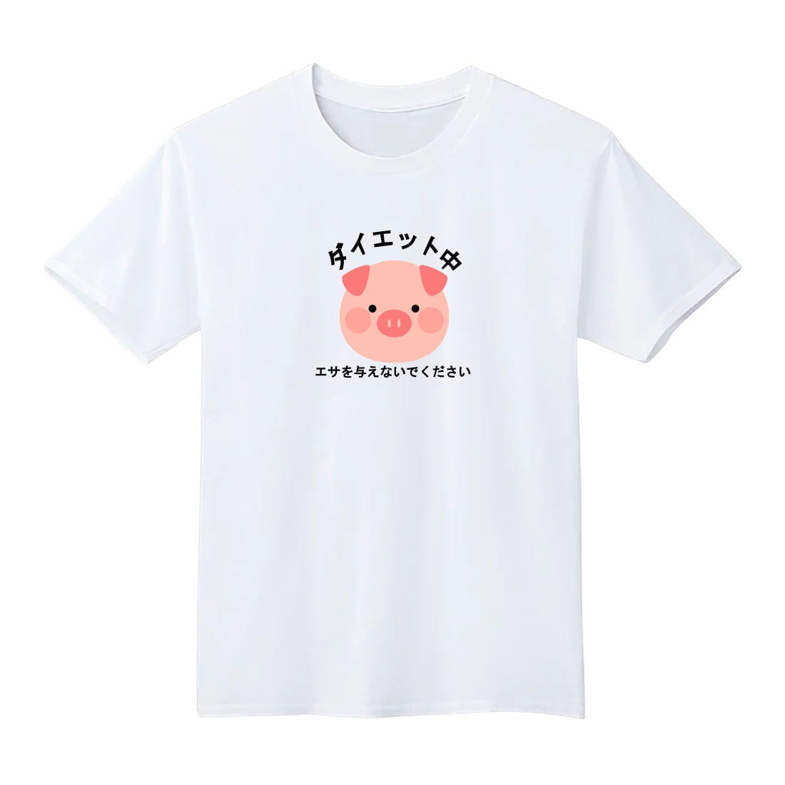 ダイエット中 ブタ エサを与えないでください Tシャツ 半袖 白 黒 大阪名物 なんでやねん ギャグ ネタ ウソ ボケ ウケ狙い パロディ おもしろ 面白い プリント ストリート 1400137