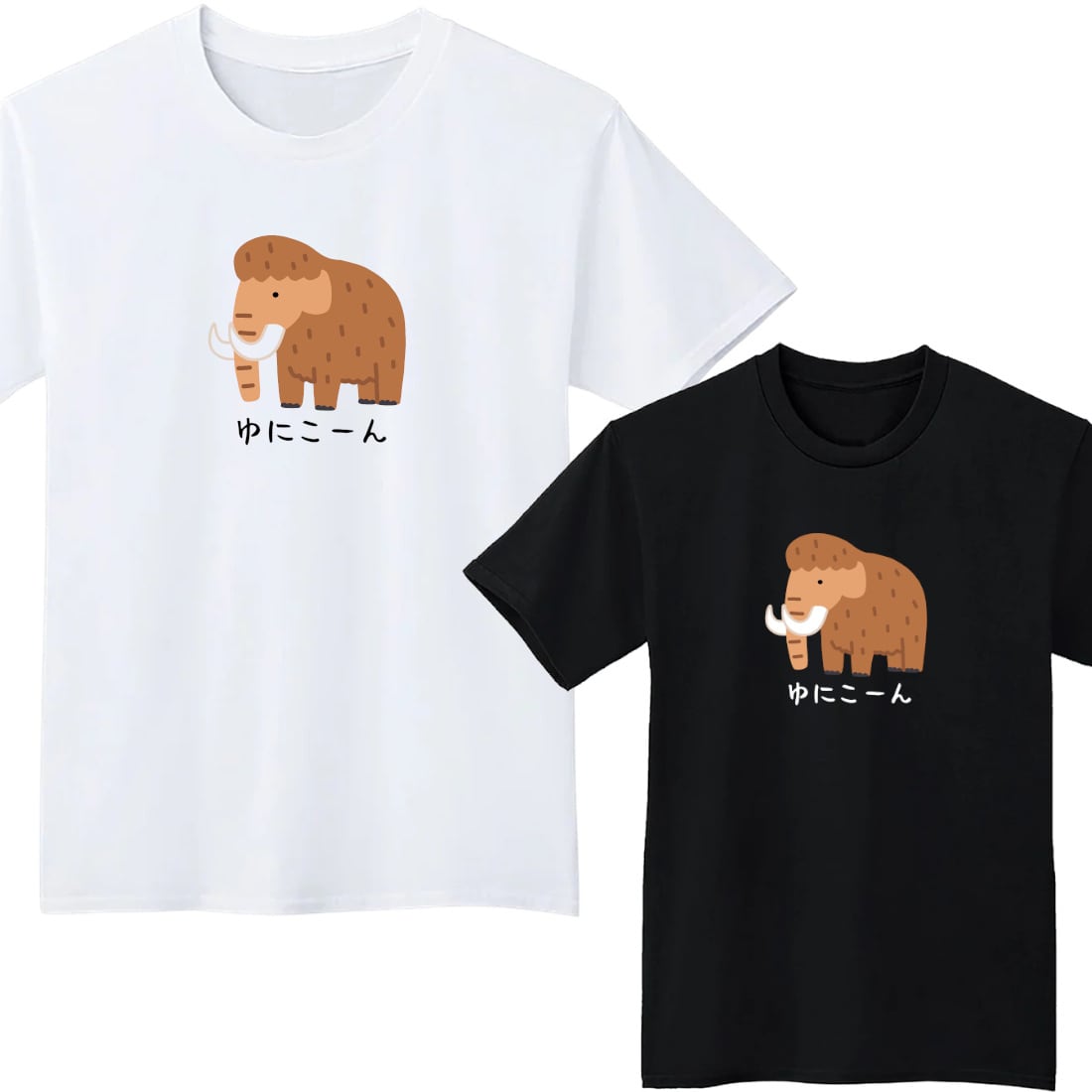ゆにこーん マンモス Tシャツ 半袖 白 黒 大阪名物 なんでやねん ギャグ ネタ ウソ ボケ ウケ狙い パロディ おもしろ 面白い プリント ストリート 1400140