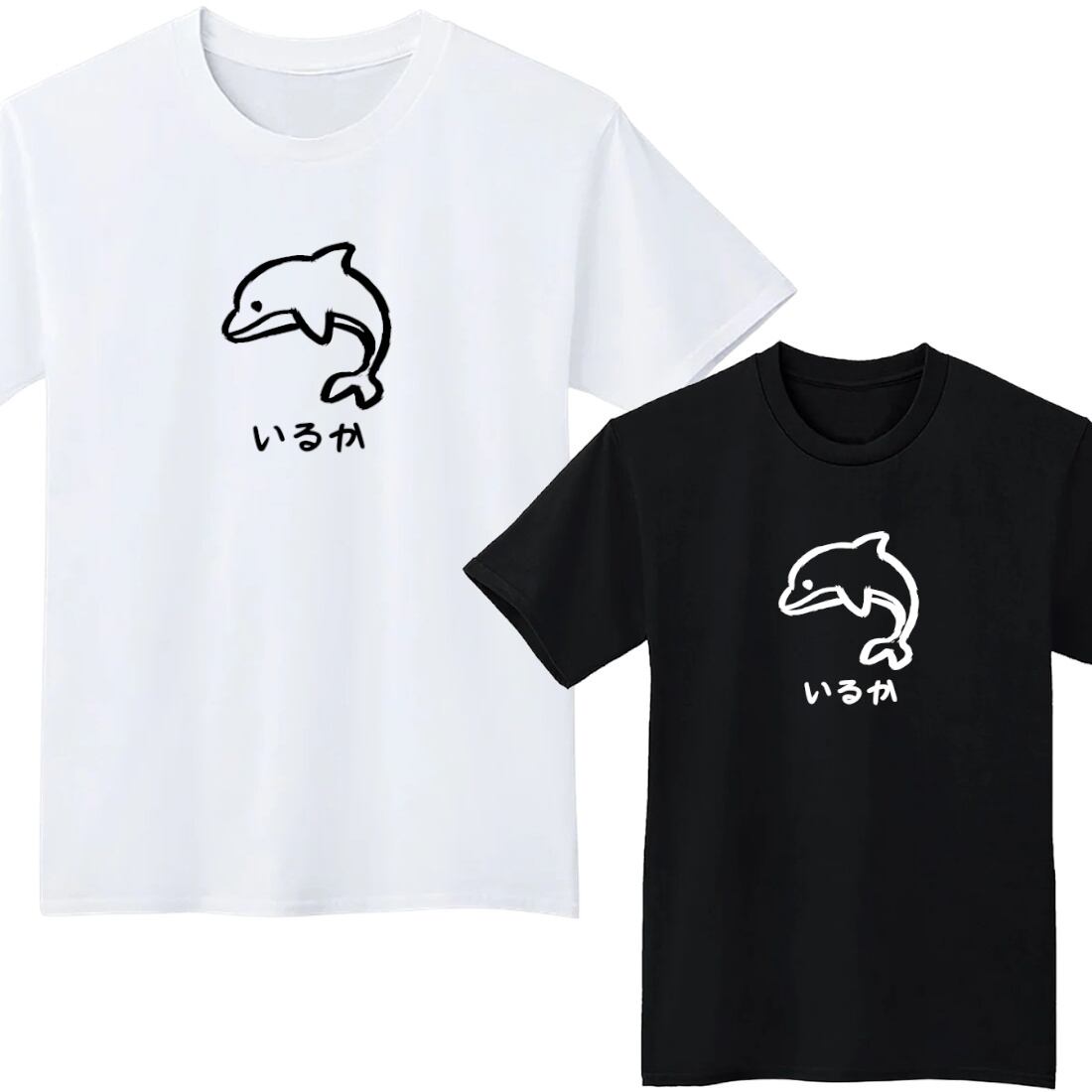 いるか ドルフィン Tシャツ 半袖 白 黒 モノクロ ゆるかわ 下手うま シンプル モード モノトーン かわいい おしゃれ 脱力系 ゆる系 ほのぼの なごみ 癒やし プレゼント ギフト 1400146